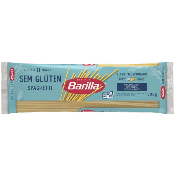 Receba em casa Massa Barilla Spaghetti sem Glúten 500g e muitos outros produtos do nosso departamento de Despensa.